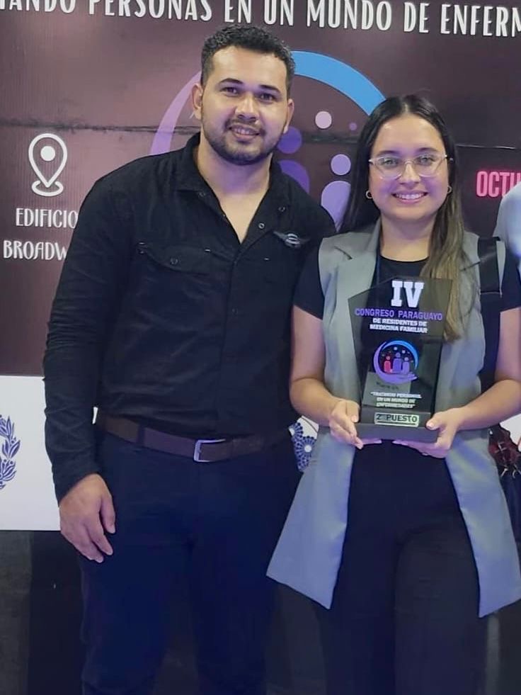 La Dra. Auxiliadora María Liz Díaz López y el Dr. Bienvenido Ariel Villalba Salinas lograron el primer puesto en la presentación de Casos Clínicos y el segundo lugar en la categoría de trabajos de Investigación, dejando en alto a la institución que los formó.