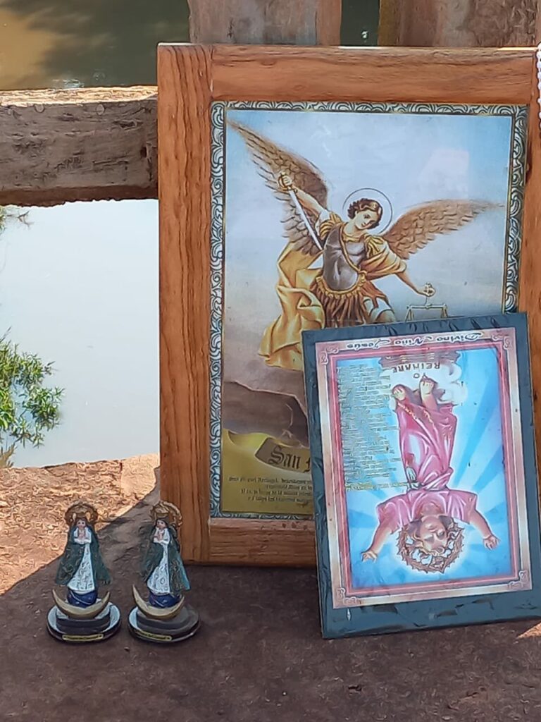 Según las fotografías enviadas son imágenes de Virgen de Caacupé(2), San Miguel y Divino Niño. Los vecinos llevaron las imágenes al oratorio local.