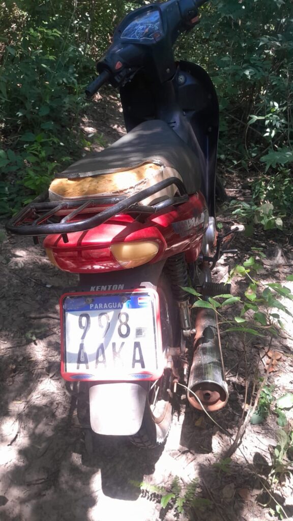 Asimismo, durante un rastrillaje por los alrededores, a unos 50 metros del camino, entre pastizales y malezas, fue encontrada una motocicleta de la marca Kenton, modelo Blitz 110 SE, color rojo, con chapa N° 998 AAKA, que fue incautada como evidencia. El biciclo pertenecería a un conocido abigeo de la zona, según los datos recabados.