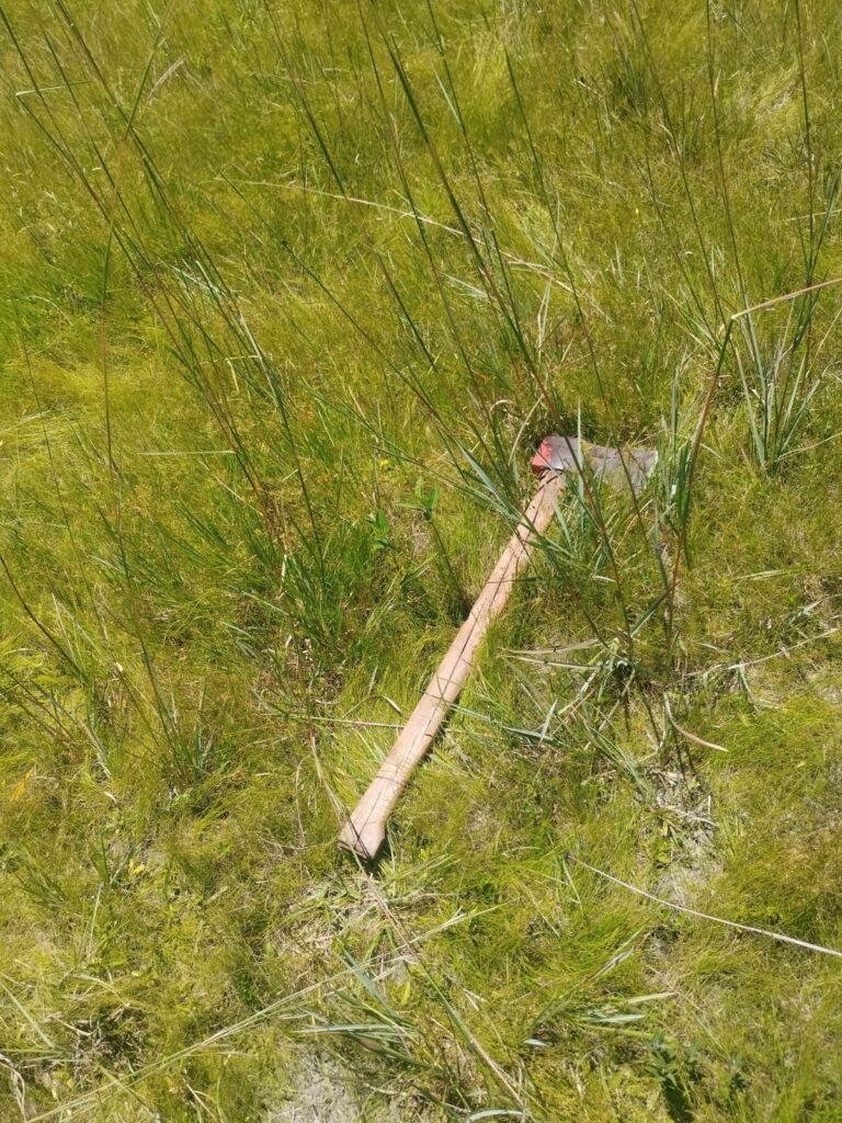 Personal policial acudió de inmediato al lugar y, una vez en el sitio, el denunciante señaló haber observado a tres personas desconocidas huyendo hacia una zona boscosa. Durante la verificación del potrero, a unos 500 metros del camino vecinal, los intervinientes hallaron un animal vacuno ya sin vida, junto a una hacha de color rojo y negro, marca Bellota, y un machetillo de aproximadamente 30 centímetros, marca Corneta, herramientas que habrían sido utilizadas para el faenamiento.