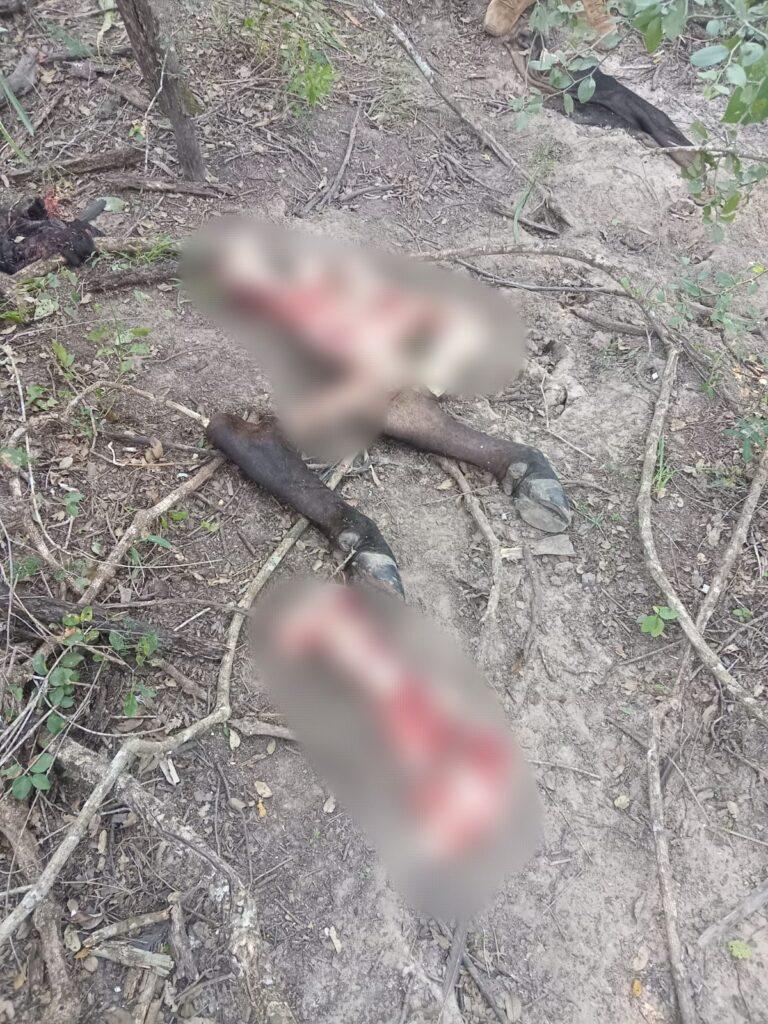Según el reporte policial de la Comisaría 12ª de San Alfredo, que en el lugar se hallaron restos del animal como cabeza, cuero, menudencias, costillas parcialmente descarnadas y patas, mientras que la carne limpia fue completamente sustraída. En la zona también se observaron huellas de al menos dos personas adultas que habrían huido hacia un camino rural que conecta con un asentamiento urbano.