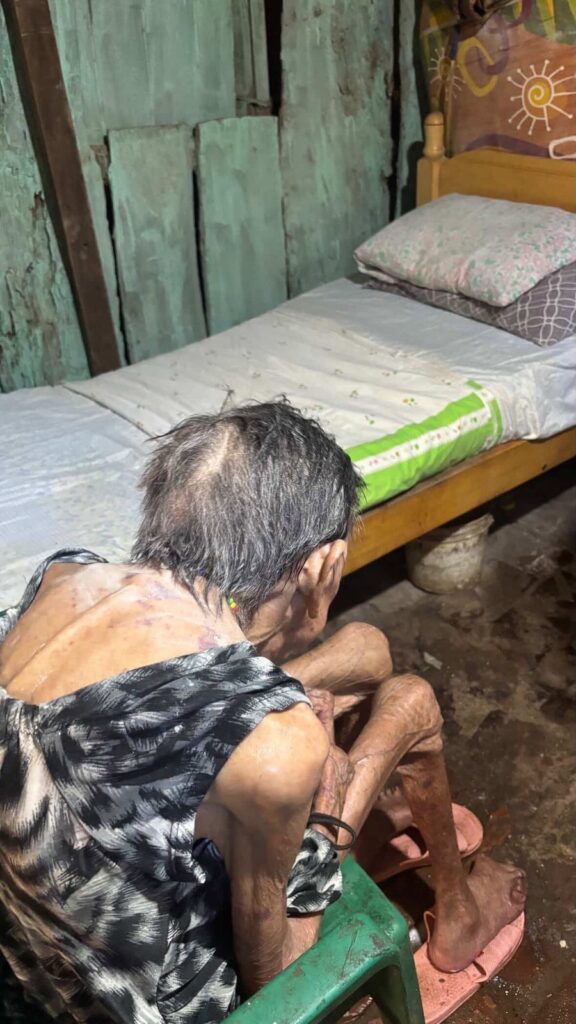 La abuela ya no puede valerse por sí misma. No cuenta con cuidados permanentes ni condiciones dignas para su bienestar. Son vecinos y personas solidarias, conmovidas por su situación, quienes llegan hasta su casa para alimentarla, bañarla y cambiarle la ropa, realizando estas tareas de manera voluntaria y desinteresada.
