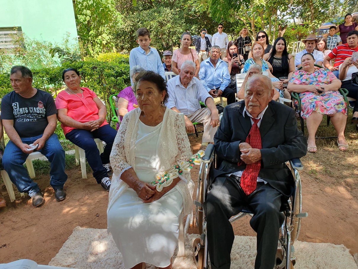 El acto matrimonial se realizó en la mencionada comunidad este sábado al mediodía. Primeramente en lo civil y luego en lo religioso, a través de un pastor evangélico. Posteriormente, sus hijos y nietos organizaron un brindis.