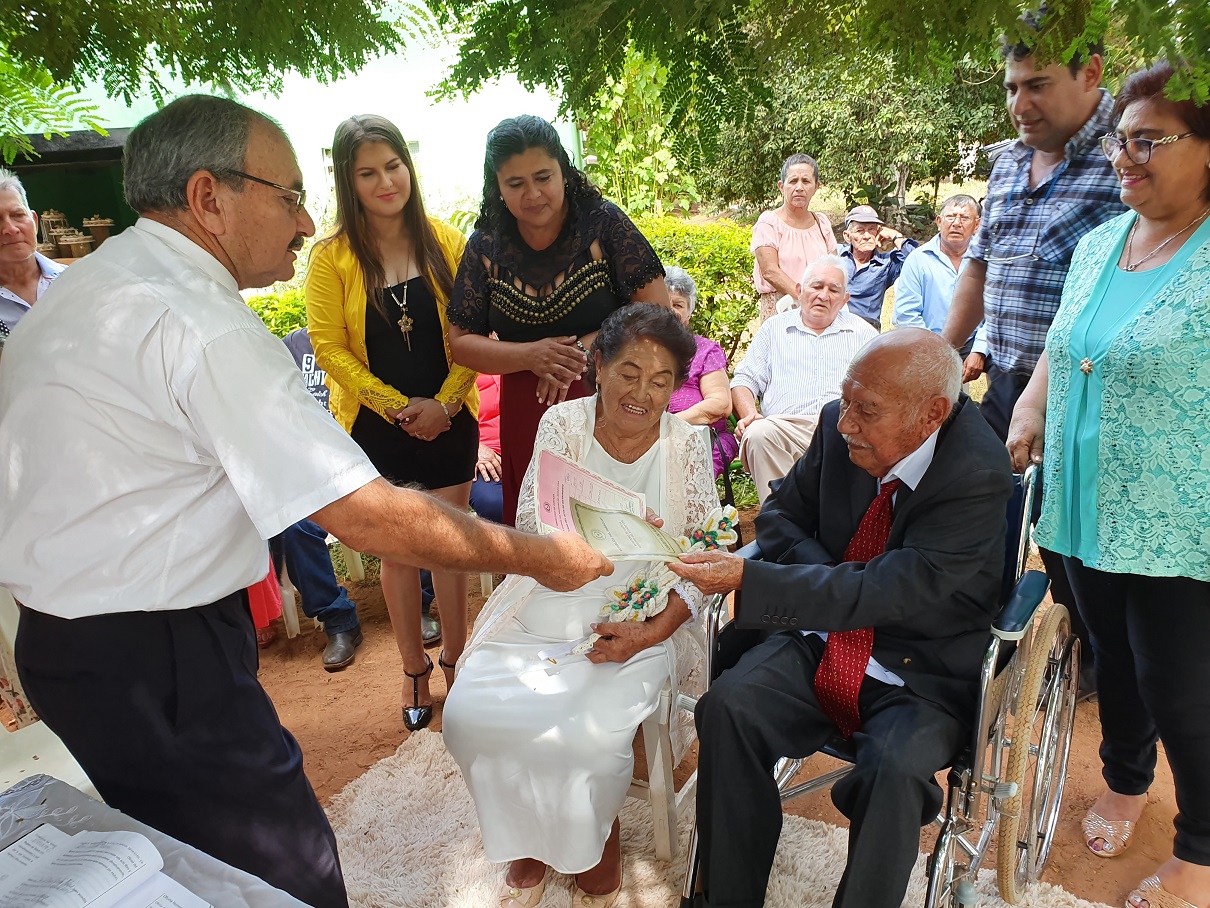 Hace muy poco tiempo, doña Teodora tuvo la iniciativa y le pidió matrimonio a don Facundo que actualmente se encuentra en silla de ruedas. La proposición fue aceptada y comunicada a los hijos y nietos que corrieron con los preparativos coincidiendo con la Semana Santa. “Ella me pidió casarnos y yo acepté, ya estoy viejo”, destacó don Facundo.