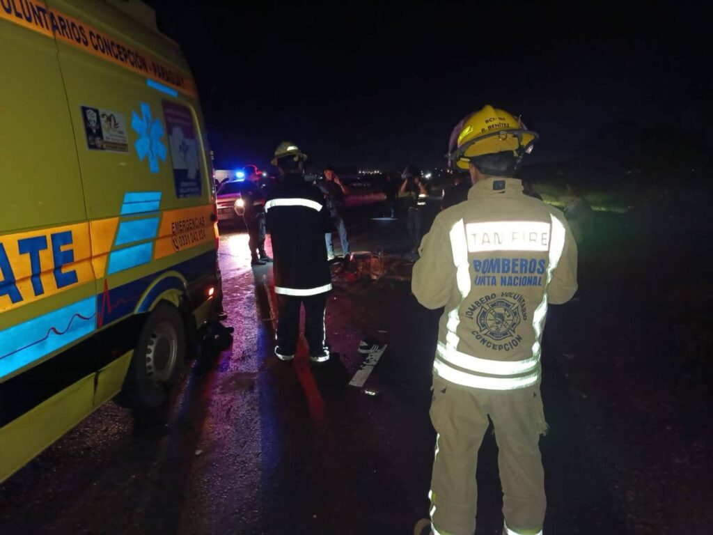 Un accidente de tránsito con derivación fatal se registró aproximadamente a las 20:50 del sábado 14 de febrero de 2026, en el kilómetro 5 de la ruta PY-22, en la ciudad de Concepción. La víctima fue identificada como Diosnel Candia González, de 33 años, domiciliado en el barrio San Antonio, quien circulaba en una motocicleta Taiga NEO de color rojo, sin chapa, la cual fue incautada por la policía. Según el diagnóstico forense, el hombre falleció a causa de un traumatismo craneoencefálico grave.