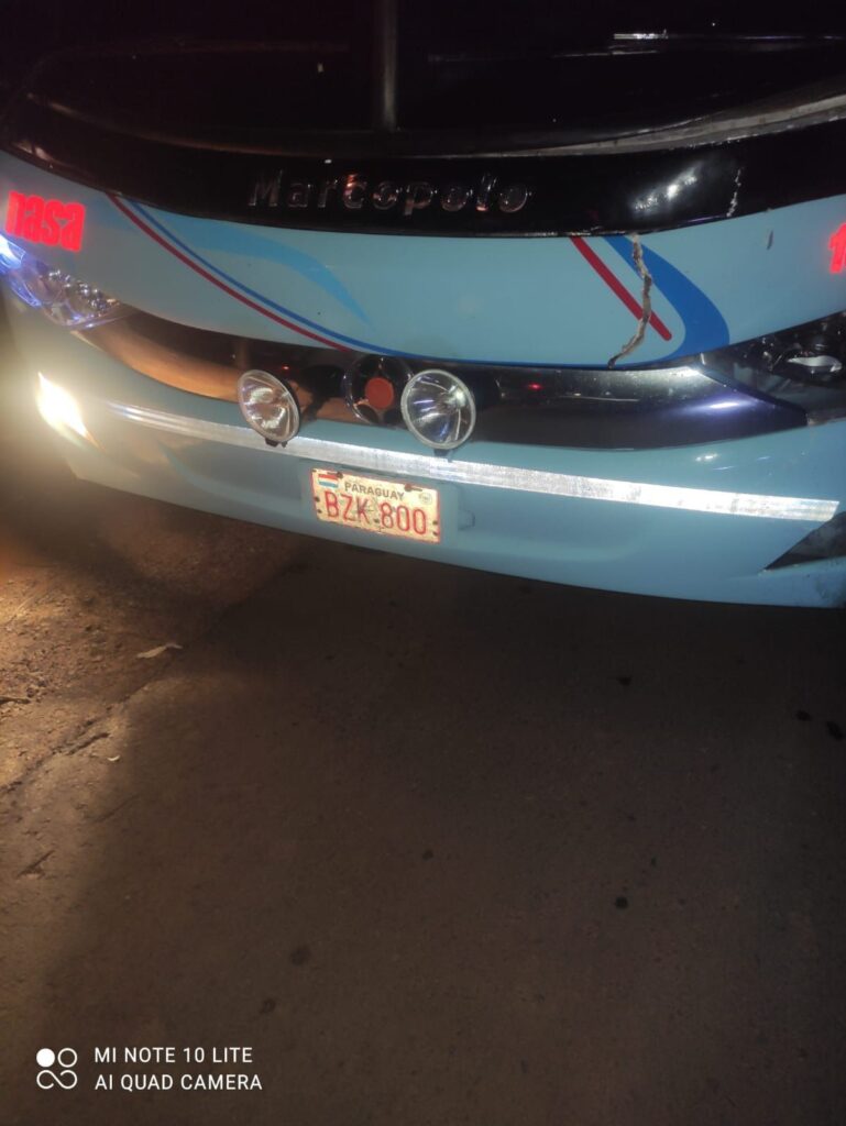 El otro vehículo involucrado es un ómnibus marca Mercedes Benz, modelo O500 RSD 2436/30 6×2, año 2015, con chapa N° BZK 800, perteneciente a la empresa Transporte Nueva Asunción S.A., guiado por Nery Ortellado Duarte, domiciliado en la ciudad de Coronel Oviedo, departamento de Caaguazú.