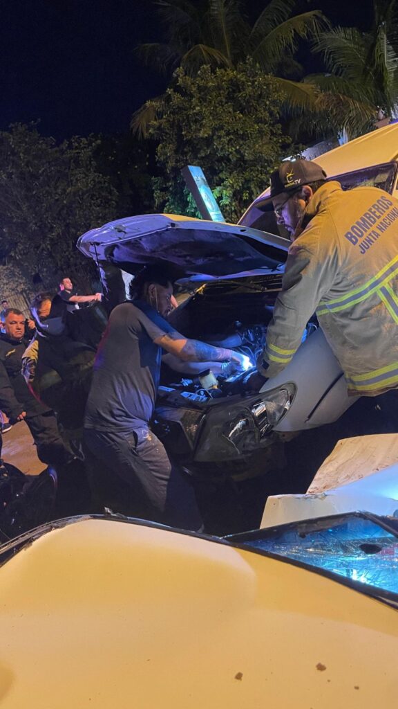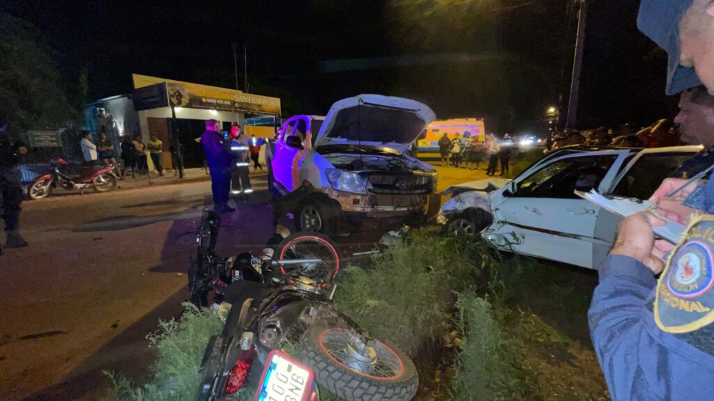 Un accidente de tránsito se registró esta noche, alrededor de las 20:14, sobre la avenida Julia Miranda Cueto de Concepción, frente a la cancha de Cebollita. El percance involucró a dos automóviles que protagonizaron un choque frontal, mientras que una motocicleta fue impactada como daño colateral al encontrarse detrás de los rodados.