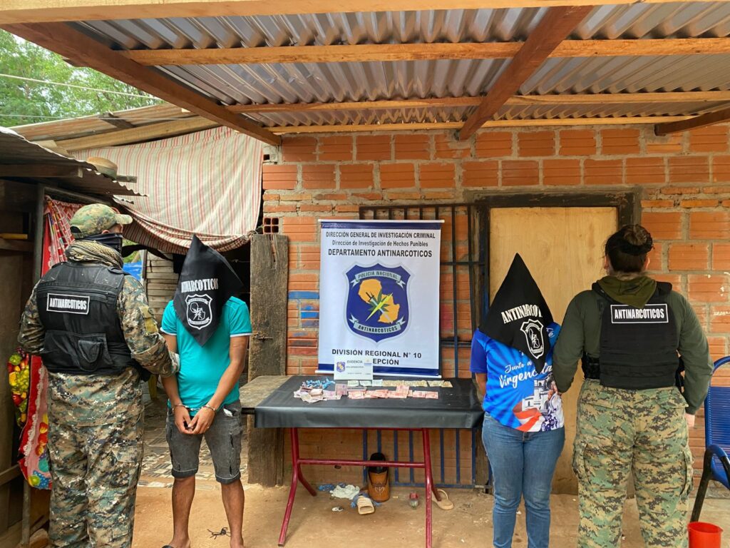 El Departamento Antinarcóticos realizó un operativo en el Barrio San Roque, donde detuvieron a tres personas e incautaron cocaína, marihuana, dinero y equipos celulares. La intervención contó con la participación del fiscal Carlomagno Alvarenga.
