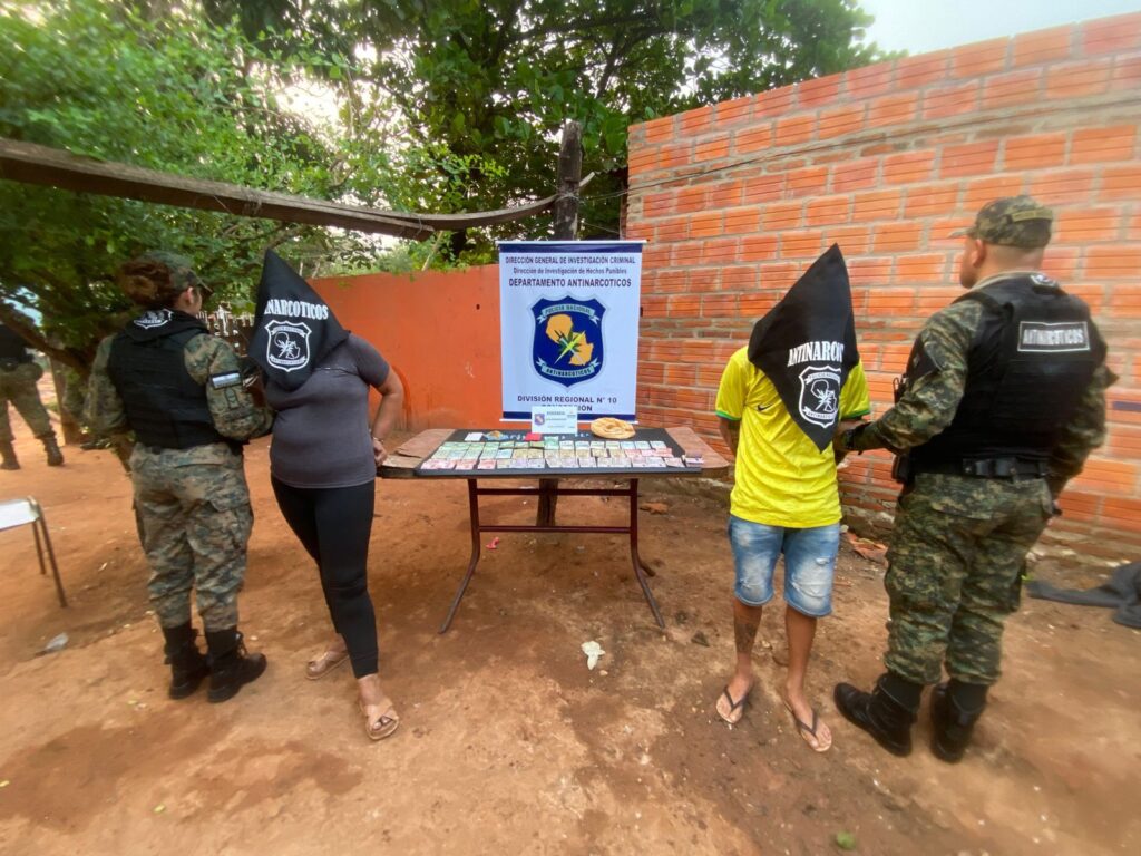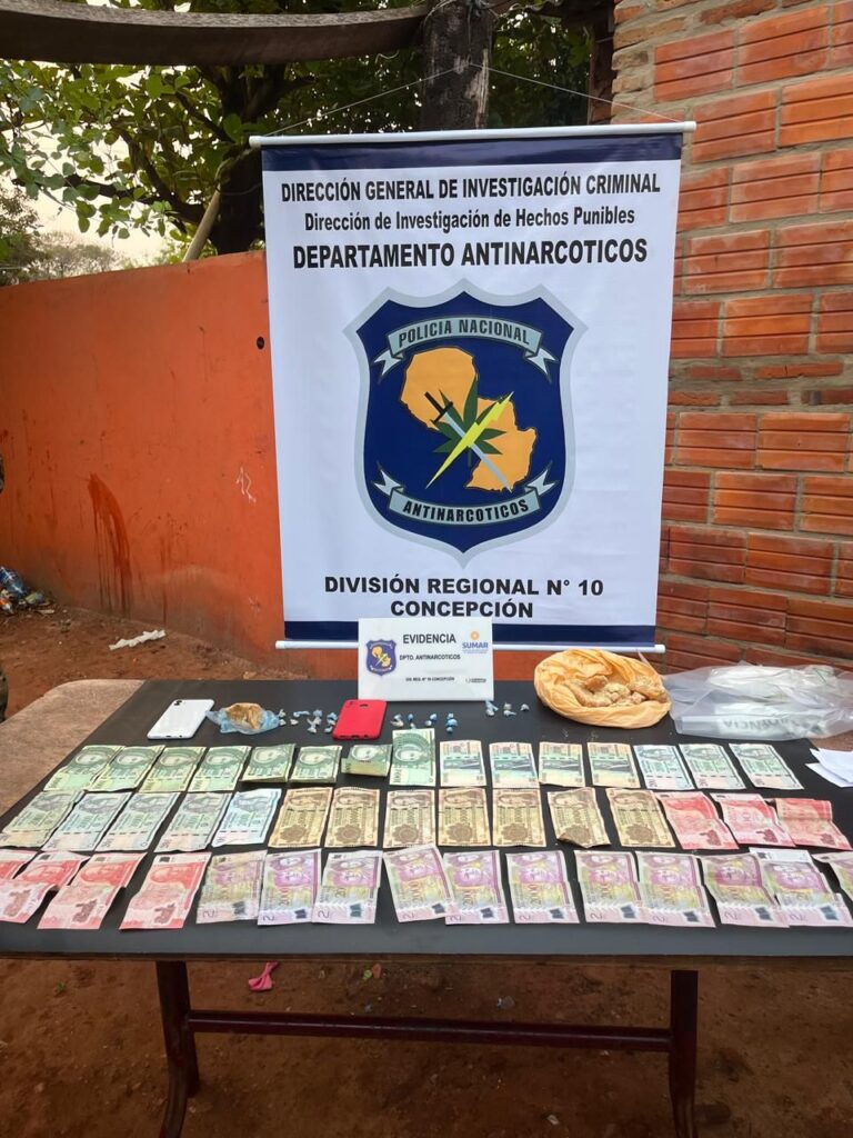 El Departamento Antinarcóticos de la Policía Nacional, a través de su División Regional N° 10 en Concepción, realizó un allanamiento en una vivienda del barrio Primavera de dicha ciudad. En el operativo, que tuvo lugar este martes 15 de octubre, a las 17:30 horas, se procedió a la detención de dos personas y a la incautación de importantes cantidades de supuesta cocaína tipo crack.