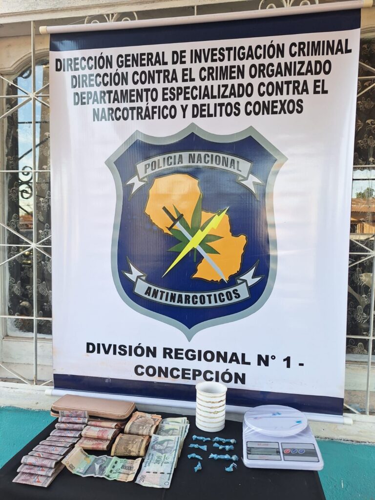 El Departamento Especializado en la Lucha contra el Narcotráfico, en conjunto con el Ministerio Público, realizó este domingo 13 de julio un allanamiento en una vivienda del barrio Inmaculada de Concepción, que derivó en la detención de dos personas y la incautación de evidencias vinculadas al presunto microtráfico de drogas
