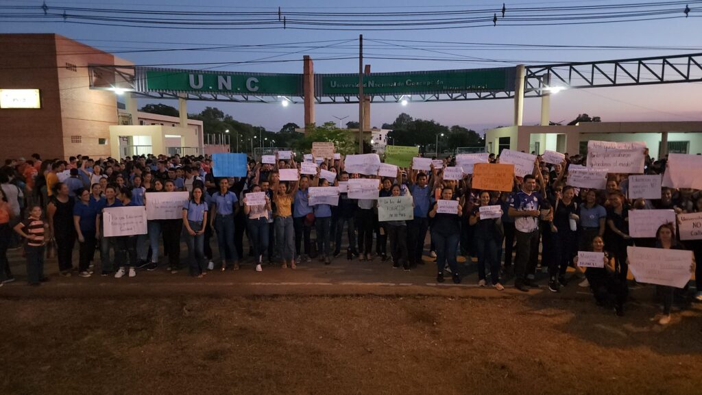 Estudiantes de diversas carreras de la Universidad Nacional de Concepción llevaron a cabo una manifestación en la noche de este miércoles en la entrada de la institución. Su objetivo era claro: exigir a las autoridades que no modifiquen el Arancel Cero, medida que la Cámara de Diputados mantuvo este miércoles mediante un cambio de fuente de financiamiento.