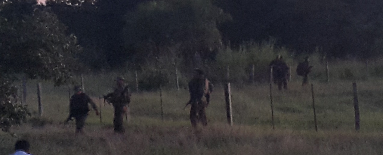 La Fuerza de Tarea Conjunta (FTC) recibió la información de que en el monte cercano a la ruta III, “Elizardo Aquino” a la altura del Km 390, hubo disparos a las 11:30 Hs aproximadamente, por lo que 5 helicópteros realizaron disparos intimidatorios sobre el monte produciéndose una balacera impresionante desde el aire. Luego también los agentes que estaban en tierra también dispararon con metralletas, pero no hubo respuesta de la fuerza enemiga.