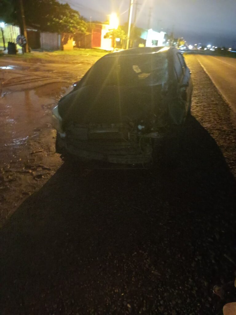El otro vehículo involucrado es un automóvil de color negro, modelo Vitz.