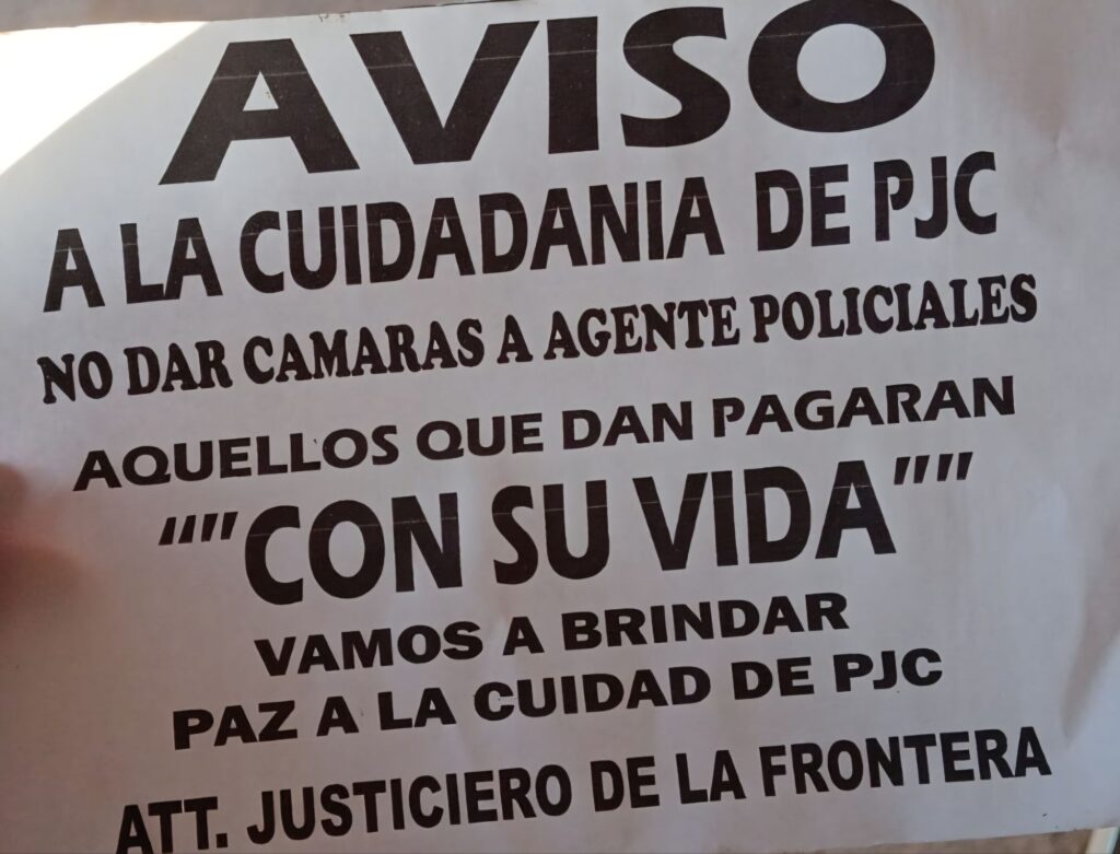 En los escritos, los supuestos delincuentes advierten a la ciudadanía que está prohibido entregar imágenes de cámaras de seguridad a los uniformados. Estos materiales suelen ser utilizados como pruebas en las investigaciones de hechos criminales registrados en la frontera.