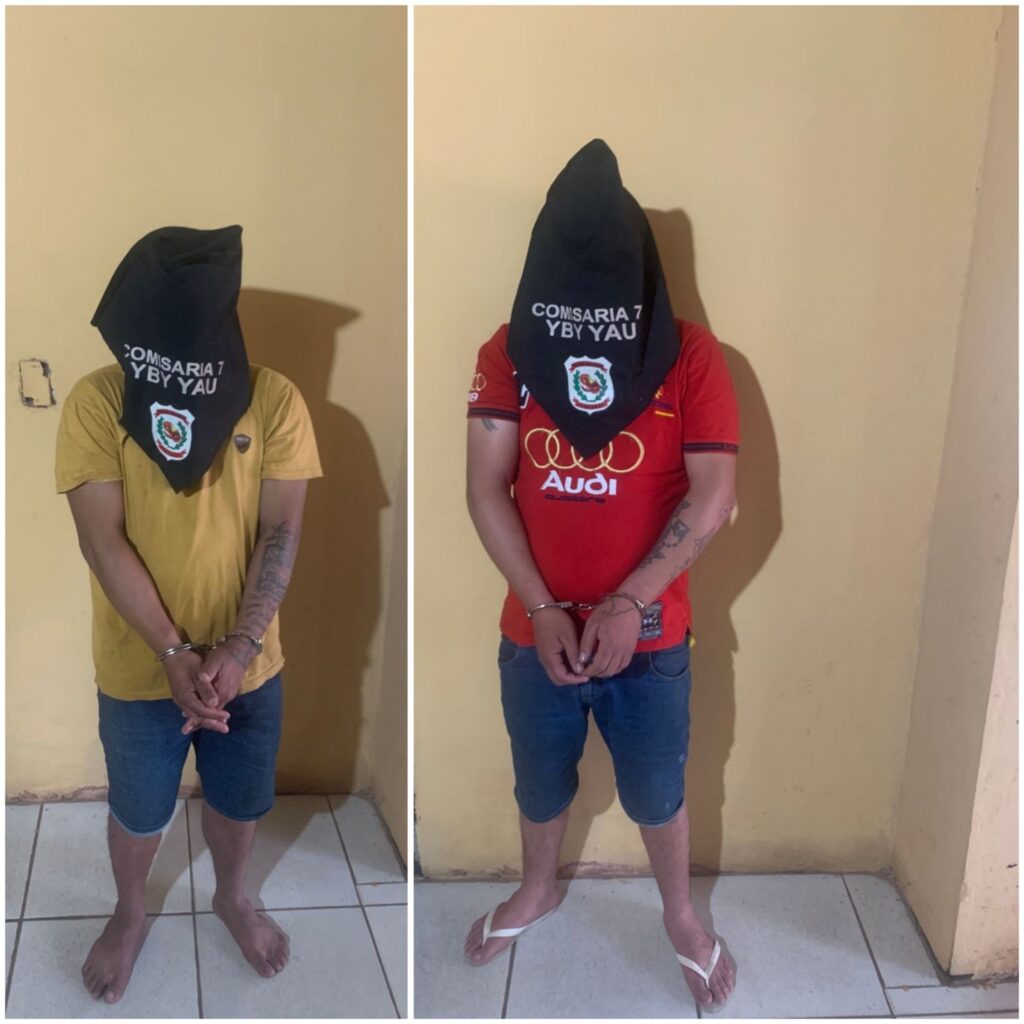 Dos jóvenes identificados como Aldo Giménez Jara (18) y Nilson Ramón Giménez Jara (26) fueron aprehendidos este lunes por agentes de la Comisaría 7ª de Yby Yaú, tras una denuncia por presunto hecho de violencia familiar y resistencia. El procedimiento se llevó a cabo alrededor de las 15:00 horas de ayer lunes en la vía pública del barrio San Juan.