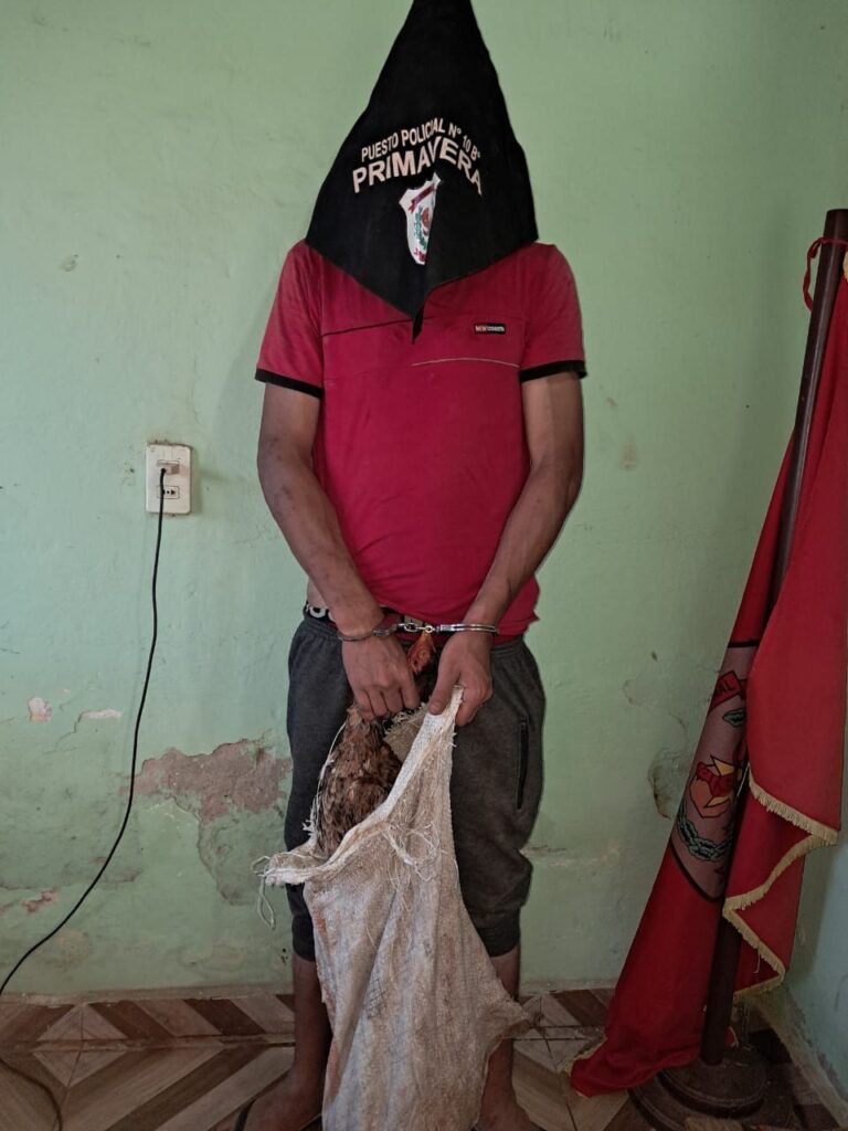 Durante una patrulla preventiva realizada este viernes 25 de abril, agentes del Puesto Policial N° 10 del barrio Primavera lograron la aprehensión de Pedro Alejandrino Morinigo Cena, alias «Nicanor», de 25 años, en inmediaciones del puente de madera de la zona. El joven, quien cuenta con antecedentes por hurto, hurto agravado y coacción sexual y violación, fue observado llevando una bolsa blanca en actitud sospechosa.
