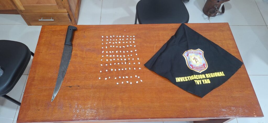 El aprehendido fue identificado como Diego Agüero Martínez, paraguayo, soltero, indígena, sin documento de identidad, domiciliado en el barrio Villa Jardín de la mencionada ciudad. Del poder del mismo fueron incautadas 106 dosis de una sustancia amarillenta, envueltas en papel aluminio, presuntamente cocaína tipo crack, además de un arma blanca tipo machetillo, de aproximadamente 40 centímetros, con mango de color negro.