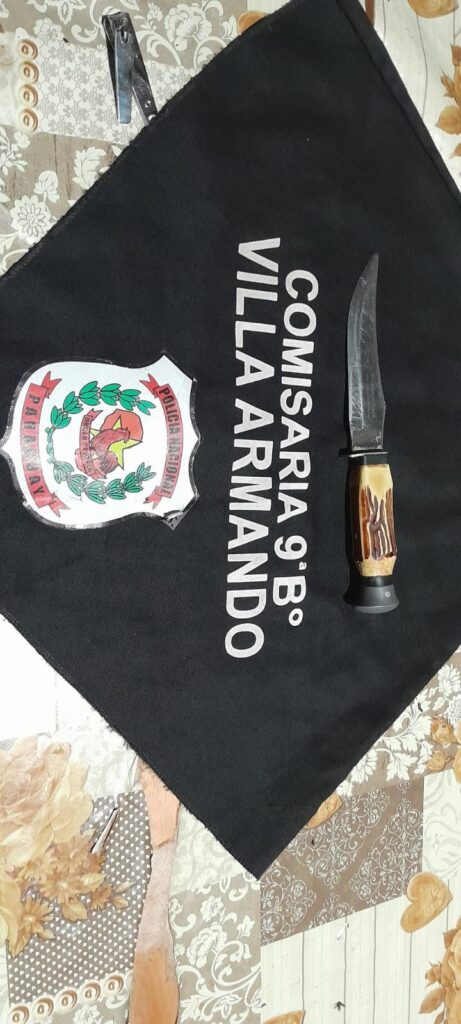 Tras un cateo corporal, los intervinientes hallaron en poder del detenido un cuchillo de unos 25 centímetros de largo, marca Tramontina, que fue incautado. El hombre, quien también tenía una herida cortante en el antebrazo izquierdo, fue derivado al Hospital Regional de Concepción para su atención médica y posteriormente trasladado a la Dirección de Policía Departamental, donde quedó a disposición del Ministerio Público.