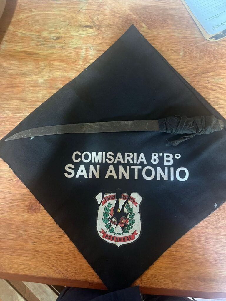 Ante la denuncia, personal de patrulla inició un rastrillaje por la zona y al llegar al sector Sagrada Familia visualizaron a la sospechosa, quien intentó darse a la fuga, pero fue alcanzada a pocos metros. Tras su aprehensión y el cateo correspondiente realizado por personal policial femenino en la sede policial, fue hallado un machetillo de aproximadamente 40 centímetros, con mango envuelto en tela, oculto en la cintura de la mujer.