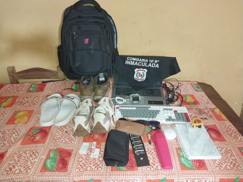 El hecho ocurrió alrededor de las 15:00 horas del viernes 13 de diciembre. La denuncia fue realizada por la víctima, Lorena Ramos Giménez, quien reportó la sustracción de varios objetos personales, entre ellos una notebook, un reloj digital, lentes de sol y calzado, de su vehículo estacionado en la vía pública. A través de un video de circuito cerrado, se logró identificar a un hombre con vestimenta campera, quien, según el registro, había abierto la puerta de la camioneta y sustraído una mochila con los objetos.