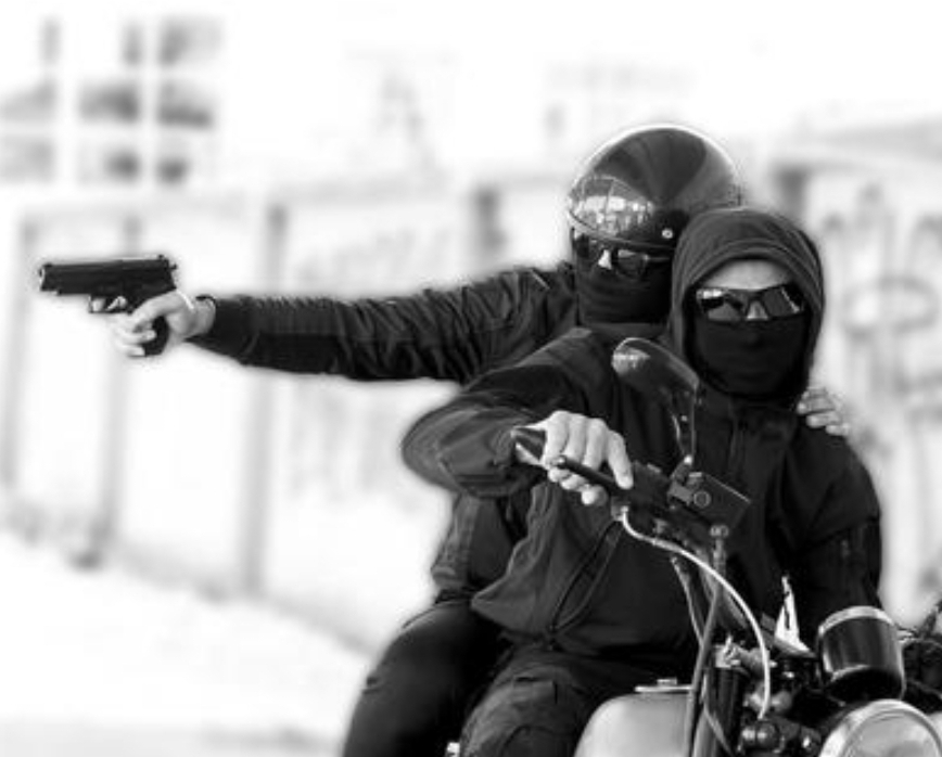 Los supuestos autores fueron dos personas de sexo masculino con casco a bordo de una motocicleta tipo trail, color blanco con rojo, con arma de fuego en mano, presumiblemente pistola, ambos con campera de color oscuro, pantalones jeans color oscuro y otro de color blanco, cuyos demás datos desconocen por darse a la fuga.