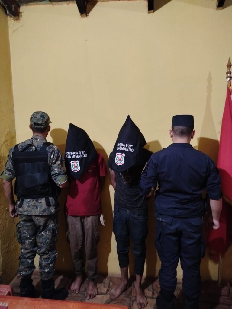 La rápida reacción de vecinos y agentes policiales permitió la captura de dos de los implicados, identificados como Luis Gilberto Ruiz González, de 20 años, quien violaba medidas cautelares de arresto domiciliario, y un adolescente de 16 años con iniciales J.D.Z.Q. A uno de ellos se le incautó un cuchillo de aproximadamente 30 centímetros. Un tercer sospechoso, identificado como Rodrigo Zayas, alias «Angel’i», logró escapar tras internarse en un yuyal.