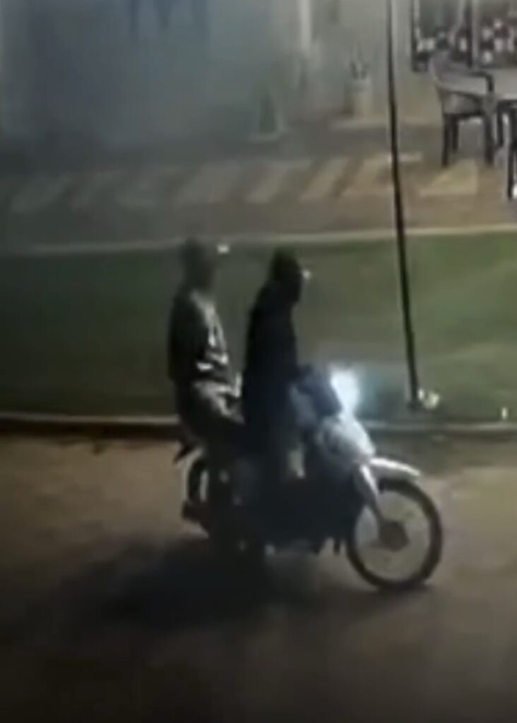 De acuerdo con la denuncia, dos personas de sexo masculino llegaron al sitio a bordo de una motocicleta, presumiblemente de la marca Kenton, modelo Blitz, de color blanco. Ambos vestían prendas tipo canguro con capucha y quepis, y portaban armas blancas tipo machetillo, con las que amenazaron al propietario y a sus empleados, entre cocineras y meseros, exigiendo la entrega del dinero y el teléfono celular utilizado para los pedidos.