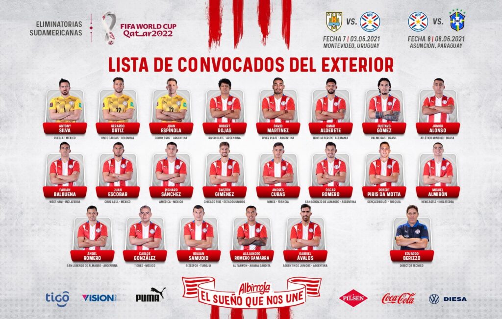 El Director Técnico de la Selección Paraguaya de Fútbol, Eduardo Berizzo, citó a 21 futbolistas del plano exterior para los juegos por las fechas 7 y 8 de las Eliminatorias Sudamericanas rumbo a Qatar 2022.
