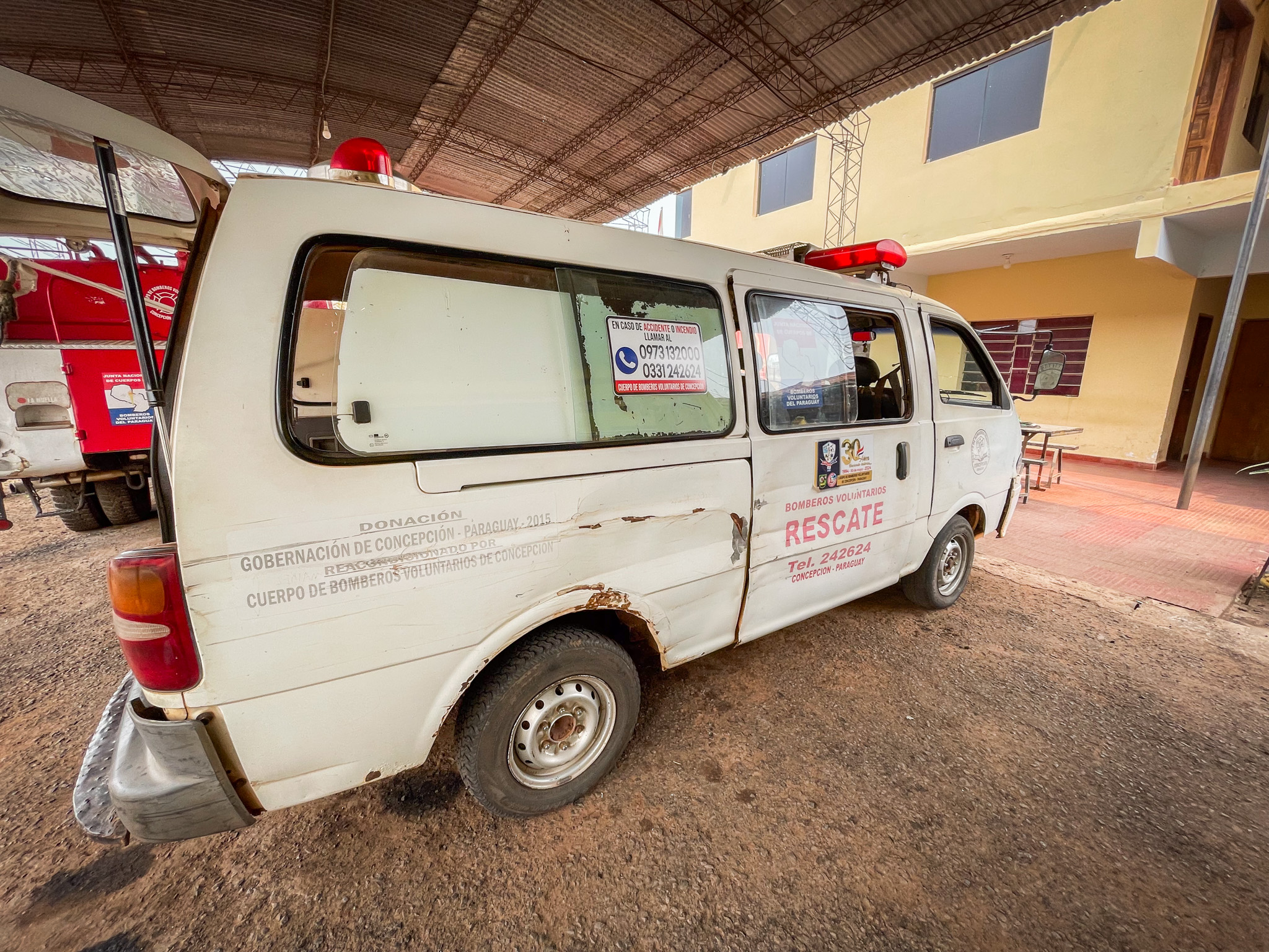 Francisco Antoniolli, presidente del Cuerpo de Bomberos, explicó que la ambulancia, un modelo Kia Pregio del año 2000, fue donada en 2001 por el gobierno de Cantabria, España, a través de gestiones realizadas por la Concepcionera Elvira Benítez y el Rotary Club de Concepción y Cantabria. Sin embargo, después de más de dos décadas de servicio, los costos de reparación han aumentado exponencialmente, y muchos de los repuestos ya no están disponibles en el mercado. A pesar de haber prolongado su vida útil mediante reparaciones improvisadas con piezas de otros vehículos, Antoniolli señaló que ya no es seguro continuar usando la ambulancia, mencionando que «no queremos ser irresponsables y que en medio de un accidente la ambulancia deje de funcionar cuando más se necesita».