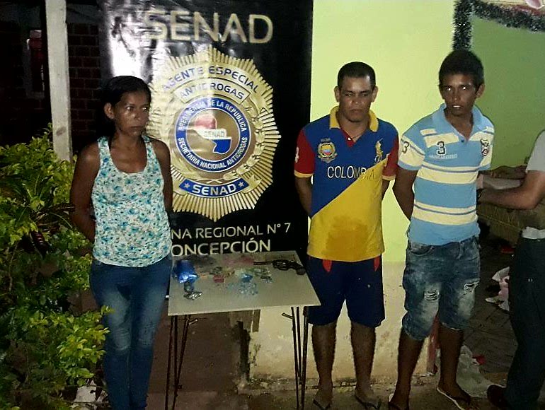 Agentes de la SENAD detuvieron a tres personas tras un allanamiento realizado en el barrio IDM de la ciudad de Concepción. Los intervinientes incautaron drogas.