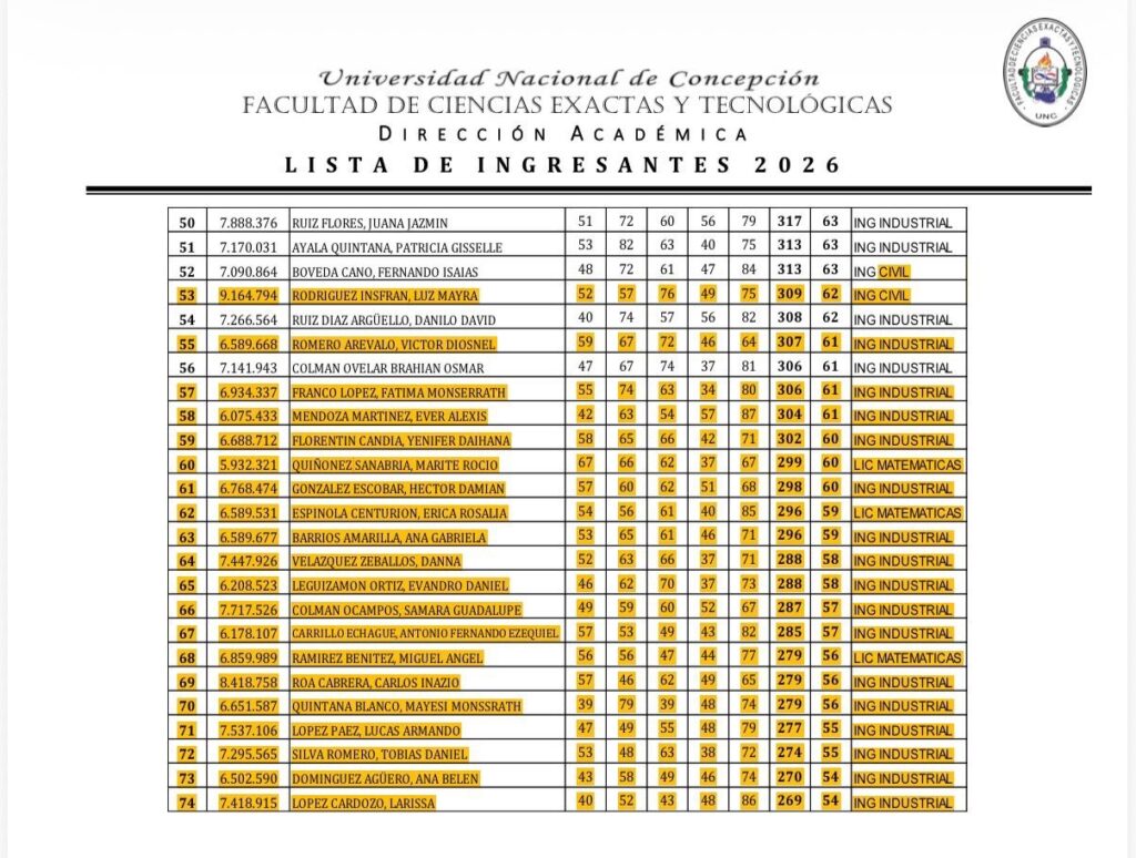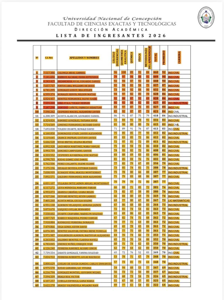 El Centro de Estudios Delta marcó un hito histórico en el examen de ingreso 2026 a la Facultad de Ciencias Exactas y Tecnológicas (FACET) de la Universidad Nacional de Concepción (UNC), consolidándose como el principal centro de formación académica en el área de ciencias exactas en la ciudad.