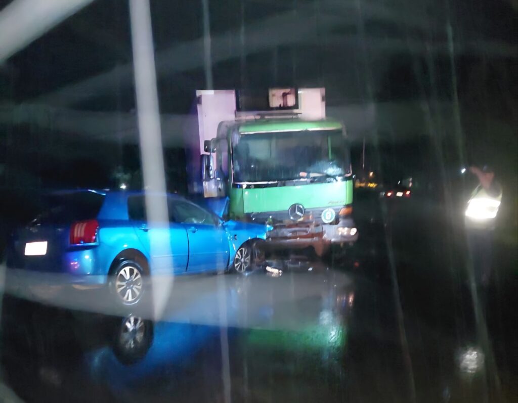 El siniestro fue protagonizado por un automóvil Toyota Corolla Runx, color azul, año 2003, con chapa HDE 915, al mando de Ysmael Aquino González (35), domiciliado en Hugua Ocampos, quien sufrió lesiones de consideración, y una camioneta frigorífica Mercedes Benz Ateo, color verde, chapa YAB 607, conducida por Néstor Coronel Duarte (31), del barrio Primavera de Concepción, quien resultó con heridas leves. En el camión viajaba además Gerardo Ramón Balbuena Godoy (20), quien salió ileso.