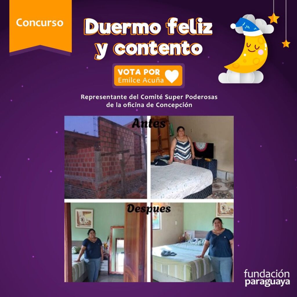 Emilce Acuña, residente del barrio San Roque en Concepción, ha sido seleccionada para representar a su comunidad en el concurso nacional ‘Duermo Feliz y Contento’, organizado por la Fundación Paraguaya. Con 48 años, Acuña lidera el comité de mujeres Súper Poderosas.