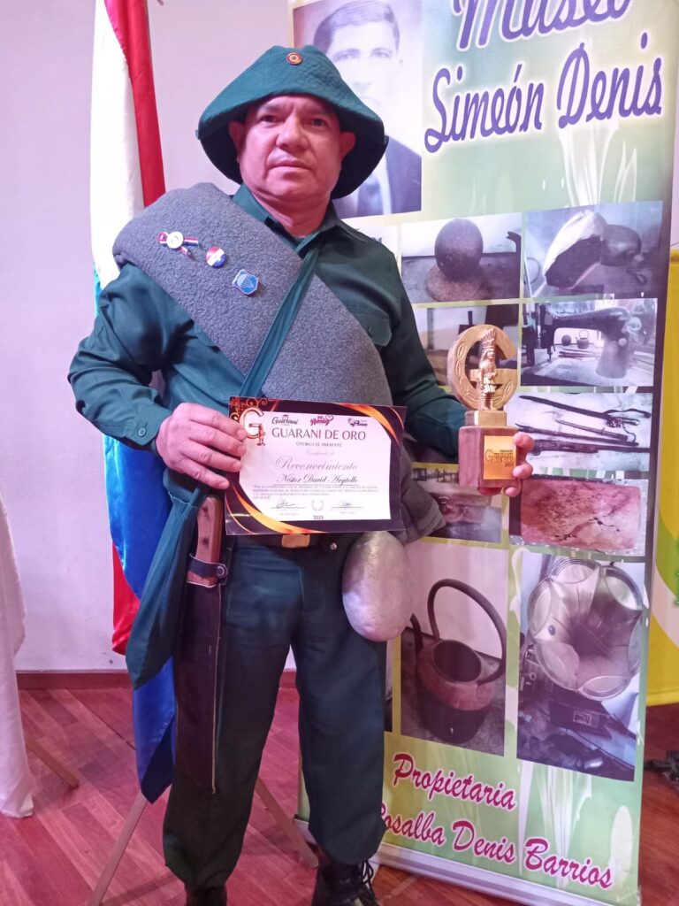 El profesor y declamador Néstor Arguello, conocido como un gran difusor del folklore nacional, fue distinguido con el Guaraní de Oro, una de las más altas condecoraciones otorgadas por la Fundación Paraguahaicha y Guaraní Online.