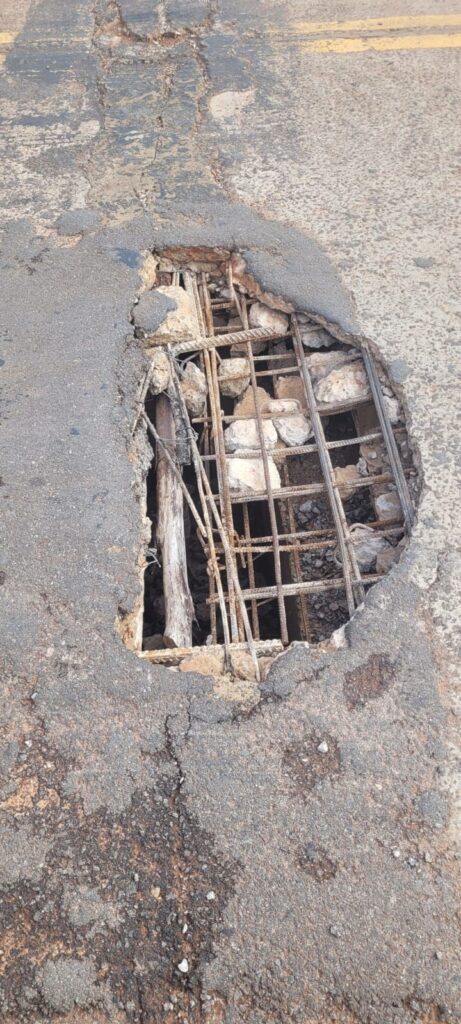 De acuerdo con el testimonio, parte de la estructura está siendo sostenida con ramas y alambres, lo que pone en riesgo a quienes circulan por el lugar. “El MOPC coloca asfalto, pero con el paso de dos o tres camiones ya se desprende nuevamente”, relató el denunciante, haciendo hincapié en la falta de soluciones estructurales.