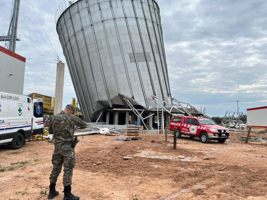 Dos trabajadores perdieron la vida y otros cuatro resultaron heridos —uno de ellos en estado grave— tras el derrumbe de un silo en construcción ocurrido esta mañana en Loma Plata, Departamento de Boquerón.