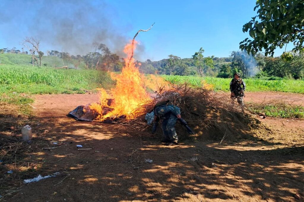 En el marco de un operativo conjunto, fuerzas de seguridad lograron la erradicación y destrucción de un centro de acopio de marihuana en el departamento de Amambay, específicamente en la localidad de San Luis, distrito de Pedro Juan Caballero.