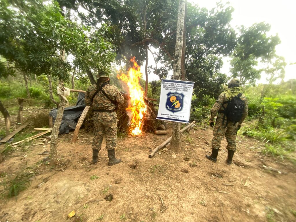 Agentes antinarcóticos erradicaron 20 hectáreas de marihuana y destruyeron más de cuatro toneladas de droga seca durante un operativo en el Parque Nacional Paso Bravo, en el distrito de Sargento José Félix López.