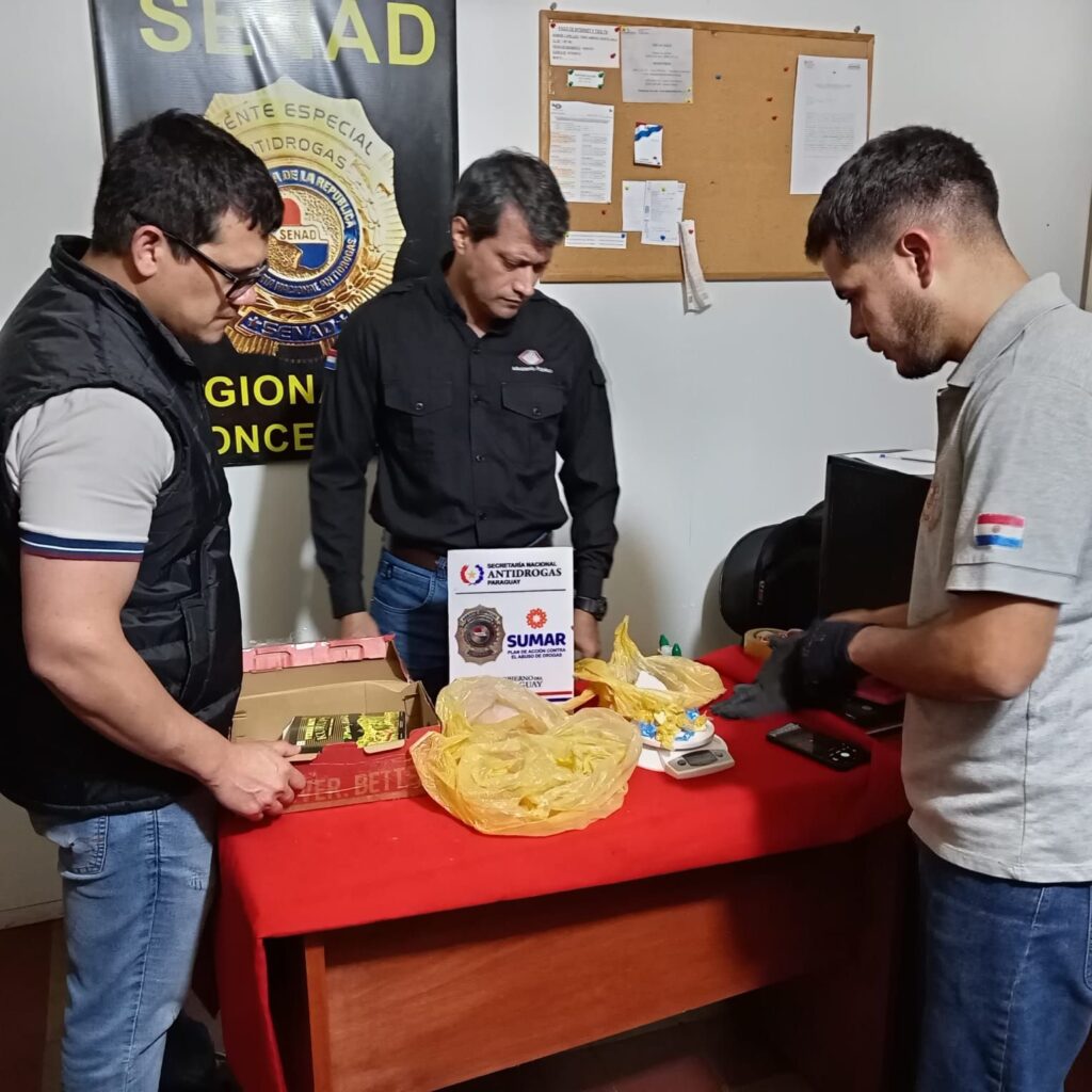 Un operativo de control rutinario en el desvío hacia los Núcleos 3 y 5 de Arroyito, departamento de Concepción, permitió a agentes de la Secretaría Nacional Antidrogas (SENAD) interceptar una encomienda que contenía cocaína tipo clorhidrato, aparentemente lista para ser distribuida.