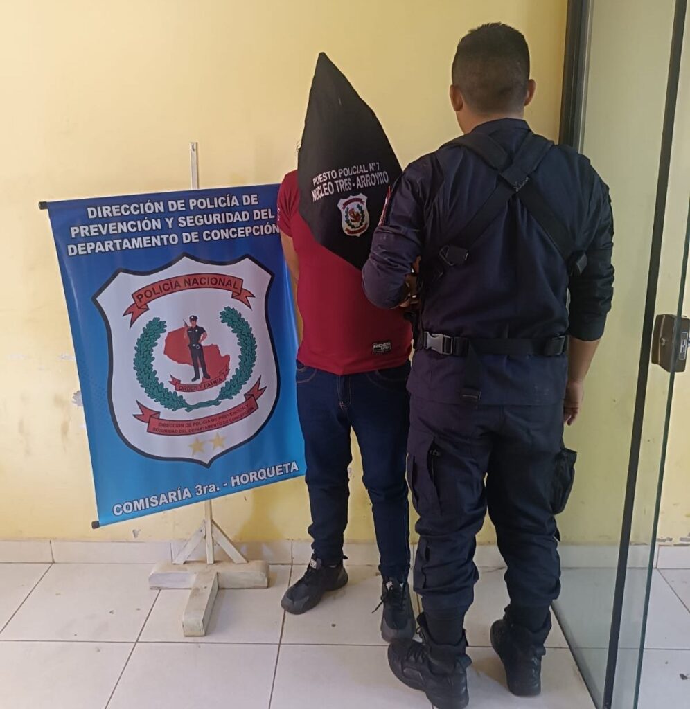 El detenido permanece en la Comisaría 3ª de Horqueta, en libre comunicación y a disposición de las autoridades competentes. Los antecedentes del caso serán elevados al Ministerio Público y al Juzgado Penal correspondiente.