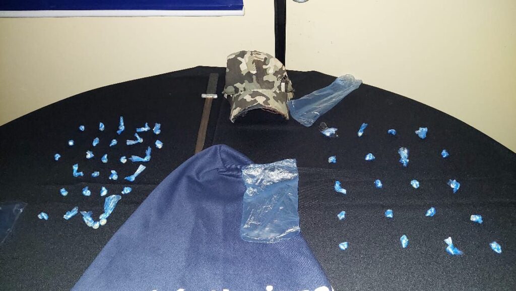 En total, se incautaron 4,64 gramos de supuesta cocaína tipo crack distribuidos en 20 dosis y otros 8,37 gramos contenidos en 30 envoltorios de polietileno color celeste. Además, se requisaron billetes de baja denominación y un teléfono celular blanco.