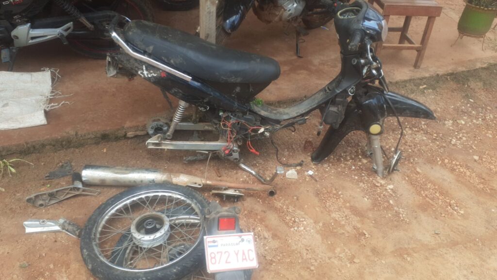 El domingo cerca de las 17 horas, los intervinientes fueron alertados de que personas desconocidas estaban desarmando una motocicleta en el predio de un yuyal, ubicada en el sector Resquín del barrio San José Olero.