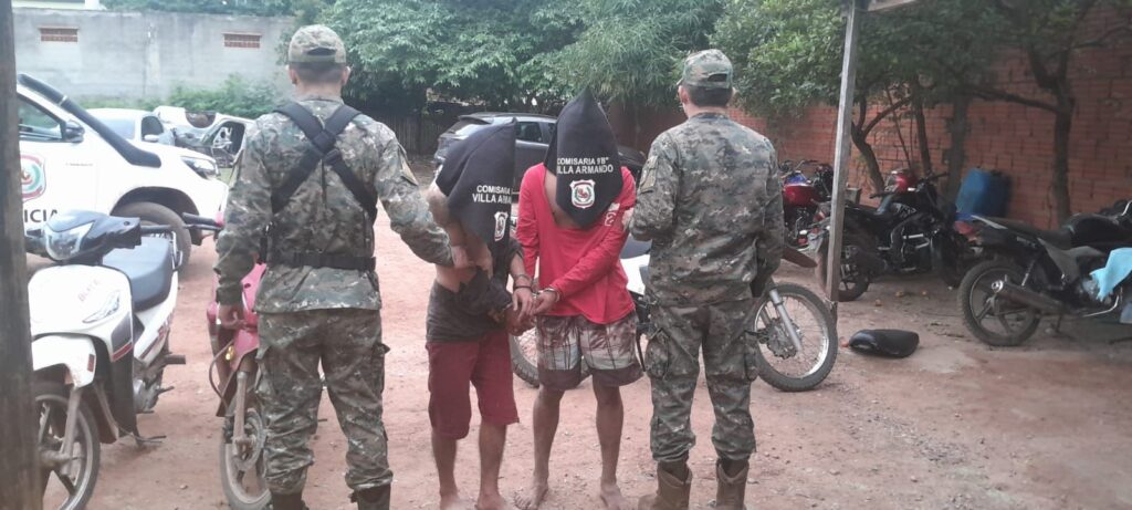 Los detenidos fueron identificados como Alex David Carrillo Fariña, de 25 años, oriundo de Villa Hayes y sin domicilio fijo en Concepción, y un adolescente de 17 años, residente del asentamiento Aquino Cué. Ambos fueron sorprendidos en el barrio San Roque cuando se desplazaban a bordo de motocicletas con características similares a las denunciadas como robadas.