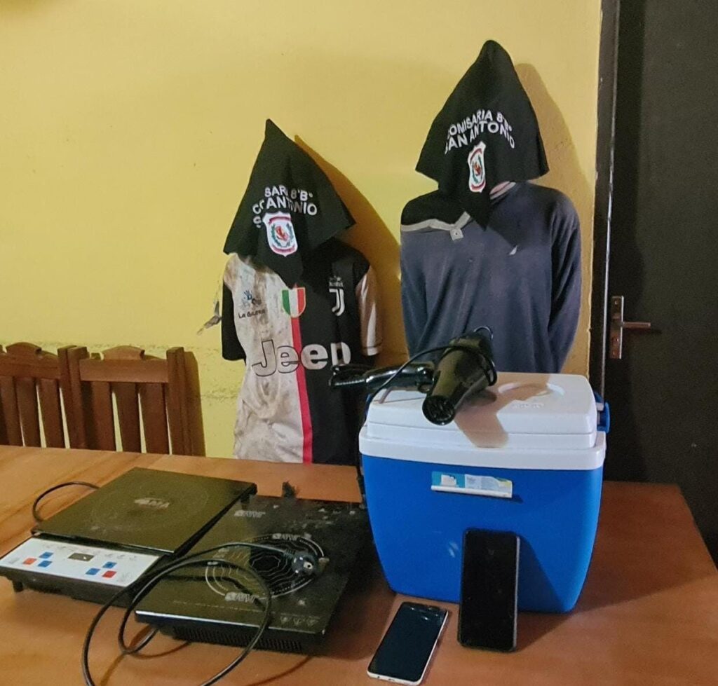 Los mismos son sindicados de haber ingresado a robar en una vivienda ubicada en el barrio Centro, perteneciente a Cynthia Salomé Arguello Díaz (47). Los malvivientes se llevaron varios objetos de valor como dos celulares, una conservadora, placas eléctricas y un secador de pelo, estos objetos fueron recuperados por la policía en poder de los sindicados.