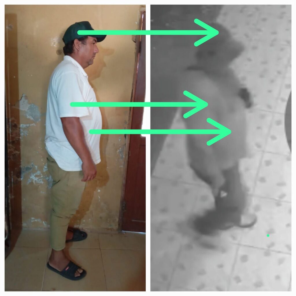 Tras revisar las cámaras de vigilancia, se identificó a un hombre con características similares al detenido, quien forzó el candado de la reja y el blindex utilizando una herramienta, posiblemente una pata de cabra. Tras ingresar, sustrajo tres celulares (Nokia, Samsung y LG), mercaderías y 500,000 Gs de la caja.