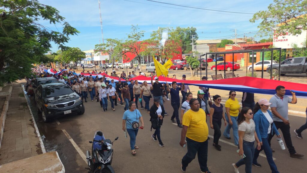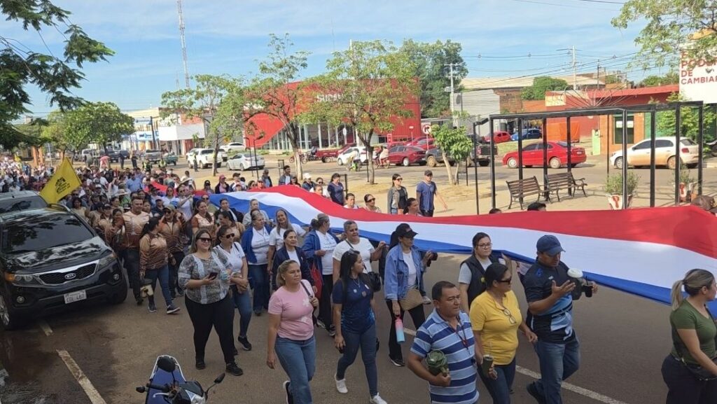 Cientos de docentes se movilizaron en la mañana de este martes por las principales calles de la ciudad de Concepción para exigir a los senadores el rechazo de la media sanción del proyecto de ley sobre la Caja Fiscal aprobado recientemente por la Cámara de Diputados.
