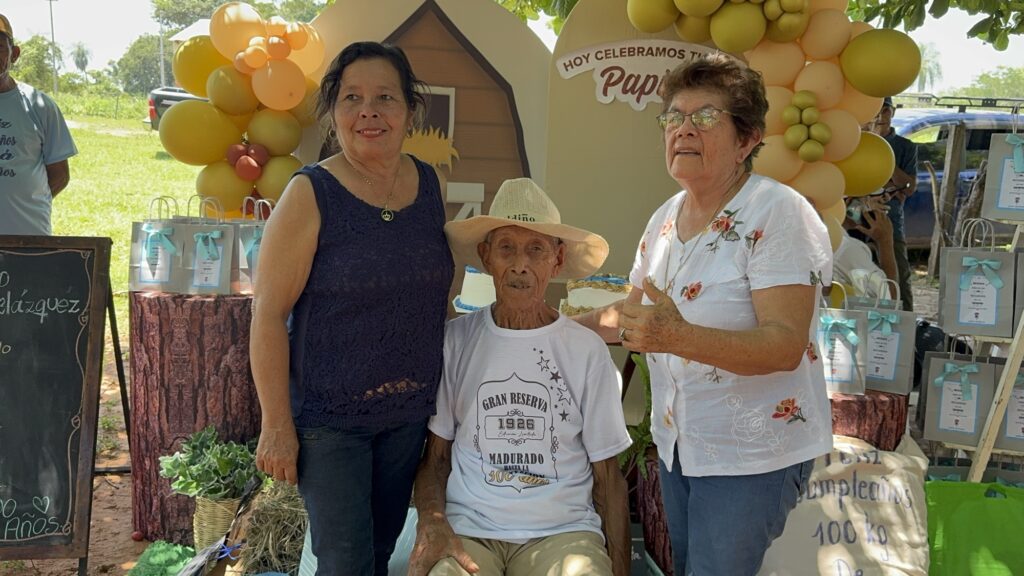 Este día se vivió como una jornada especial en la Compañía San Antonio km 10, donde Don Albino Velázquez celebró sus 100 años de vida, rodeado del cariño de su familia y de la comunidad que lo vio crecer y trabajar durante toda su vida.