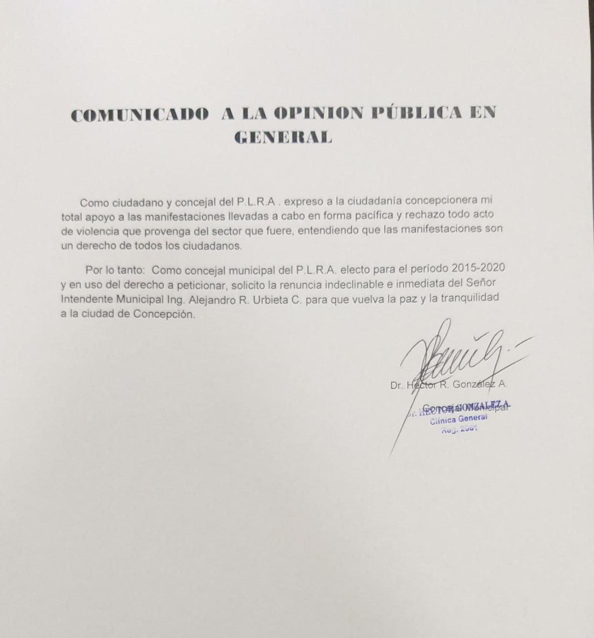 Ambos a través de comunicados sentaron sus respectivas posturas sobre las manifestaciones ciudadanas y solicitaron la renuncia del intendente Urbieta.