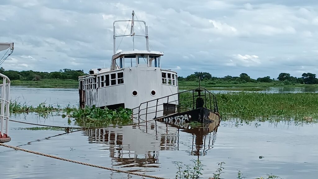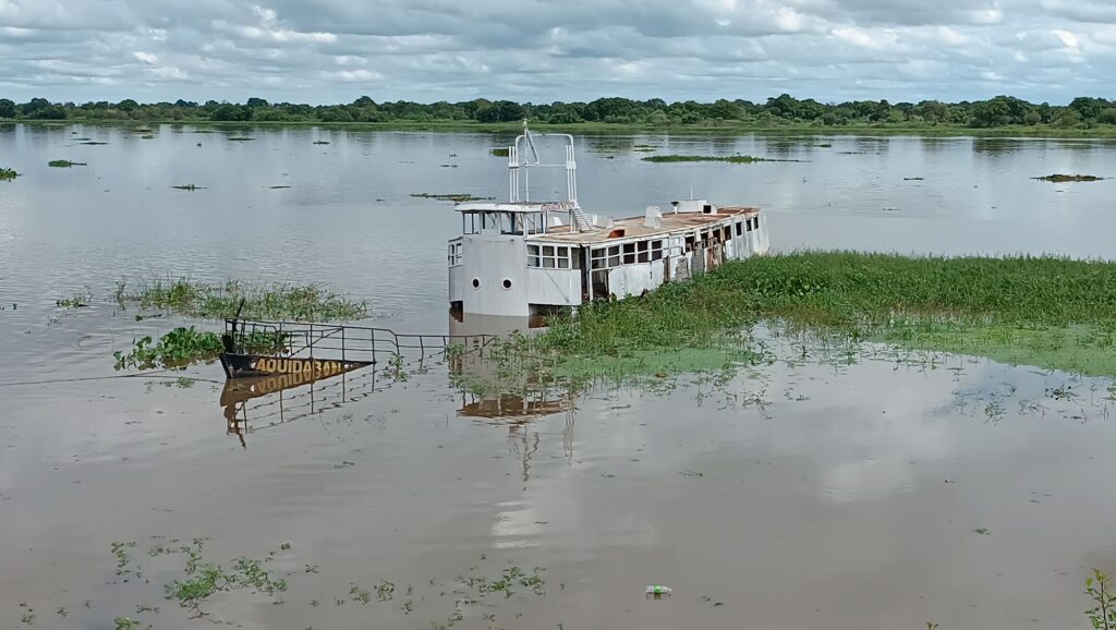 El histórico barco Aquidabán, ícono de la navegación sobre el río Paraguay, terminó hundido en una madrugada en la zona del astillero Desvars, en el barrio San Antonio de Concepción. Más de la mitad de su estructura yace ahora sumergida, tras pasar más de un año y medio amarrado, sostenido apenas por motobombas y una pizca de esperanza en una ayuda estatal que nunca se concretó.