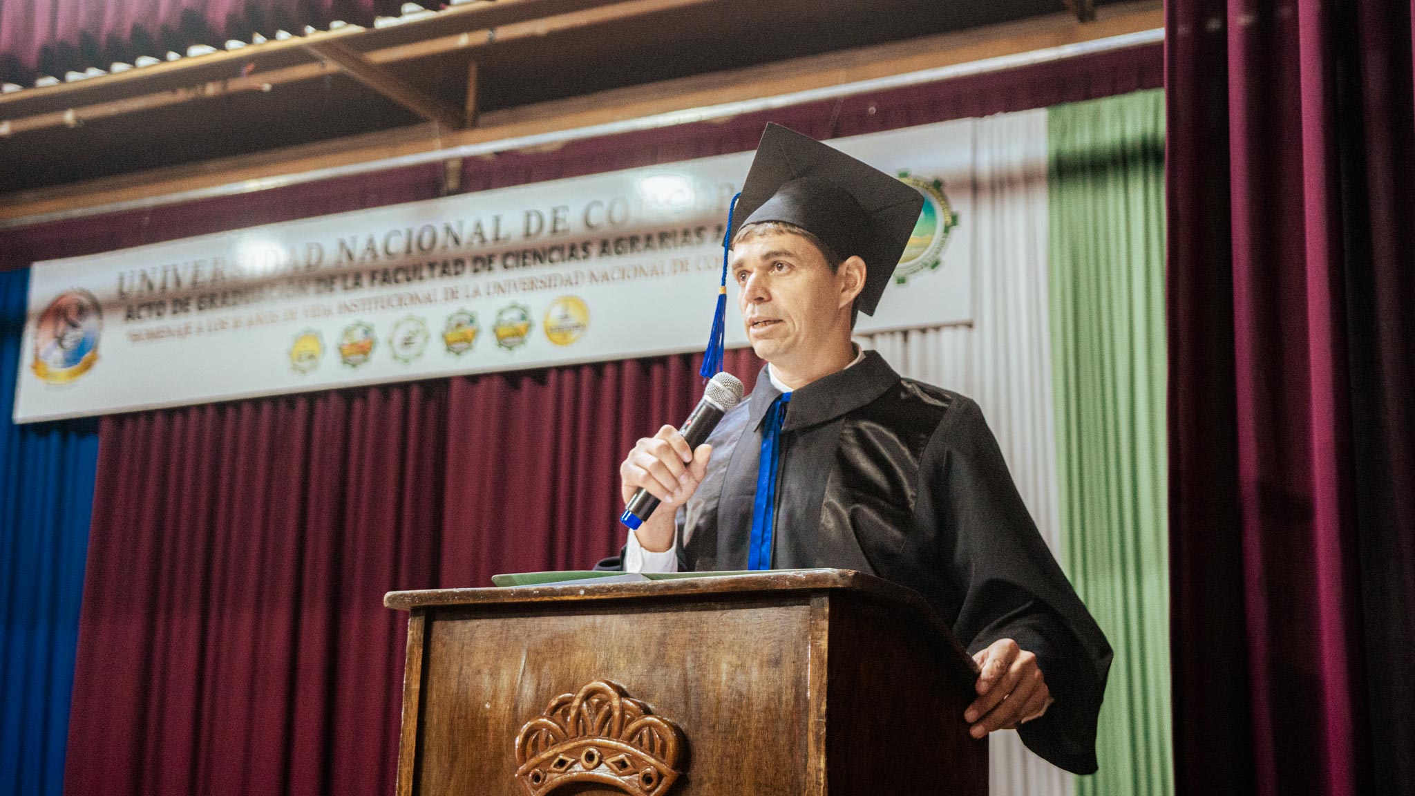 En representación de los egresados, el Lic. Claudio Olazar Gamarra expresó un discurso cargado de gratitud, donde recordó los momentos difíciles del trayecto universitario y resaltó el papel de la educación como motor de transformación. “Cada uno de nosotros tiene su historia de superación. Hoy no es un día cualquiera: es la cosecha de un futuro prometedor”, afirmó.